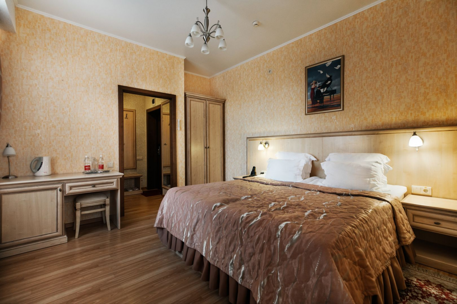 Площадь номера - 17 кв.м. 1 осн. место. Балкон. Мебель: вешалка, зеркало, кровать односпальная, прикроватная тумбочка, стол, стул, шкаф. Оборудование: кондиционер, набор посуды, сейф, телевизор ЖК, телефон, холодильник, электрочайник. Санузел: с ванной или душевой кабиной, тапочки, туалетные принадлежности, фен, халат. Сервис: Wi-Fi бесплатно, room-сервис, мини-бар, смена полотенец (ежедневно), смена постельного белья (1 раз в 3 дня), уборка номера (ежедневно), услуги внутренней телефонной связи.